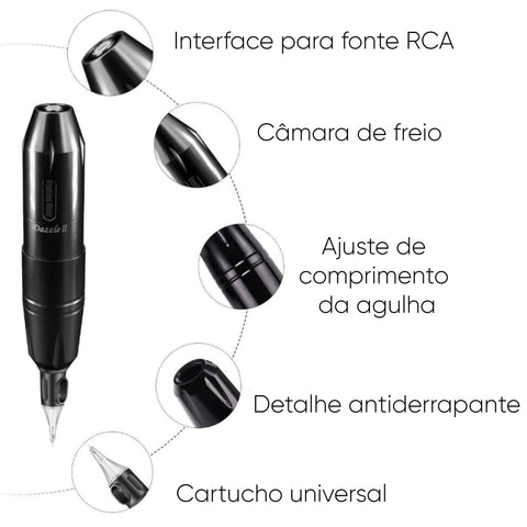 Apresentamos a Máquina de Caneta Rotativa Dazzle II - a escolha perfeita para tatuadores exigentes que buscam desempenho e versatilidade superiores em suas criações!